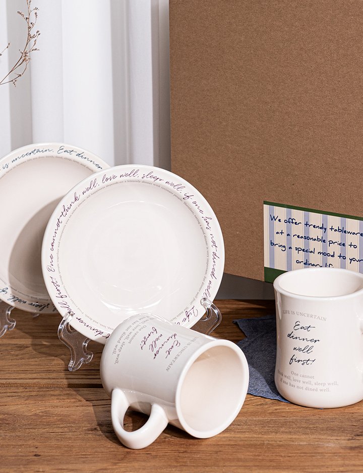 시라쿠스 뉴욕 레터 레터링 원형접시+오목머그 홈카페 브런치 디저트 선물세트 (4P)