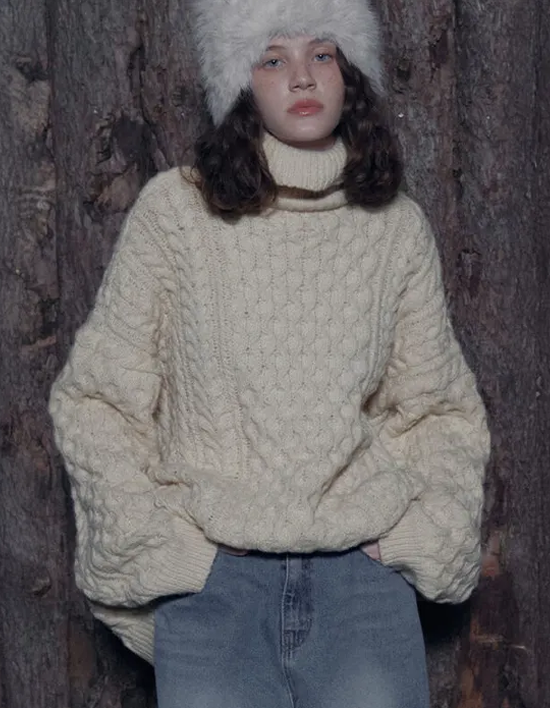 [코스에그] 케이블 롱 터틀넥 니트_EEWKN107 3color