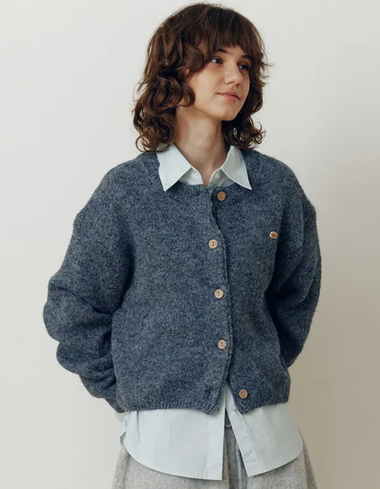 [코스에그] 헤어리 라운드 니트 가디건_EEFCA76(차콜)