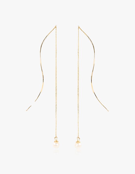[엘렌쥬얼리]14K 펄 웨이브 드롭 금 귀걸이