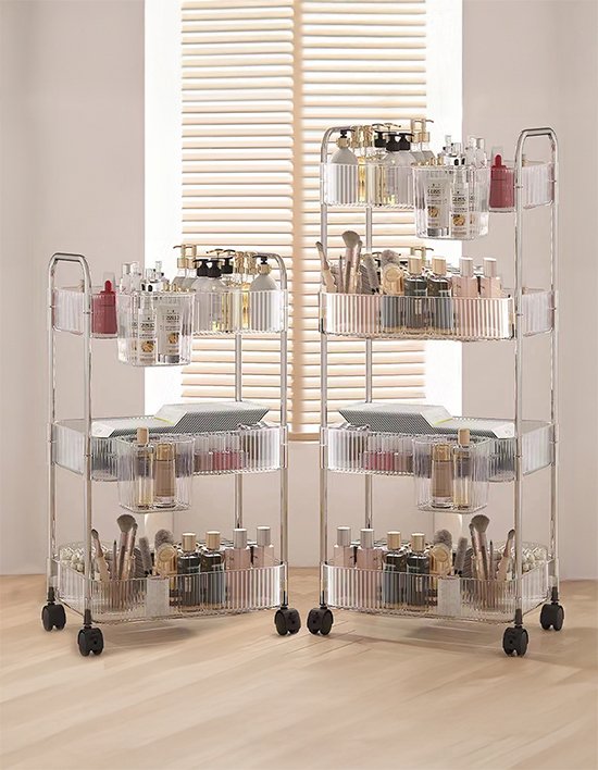 [레토] 트롤리 4단 투명 아크릴 이동식 웨건 카트