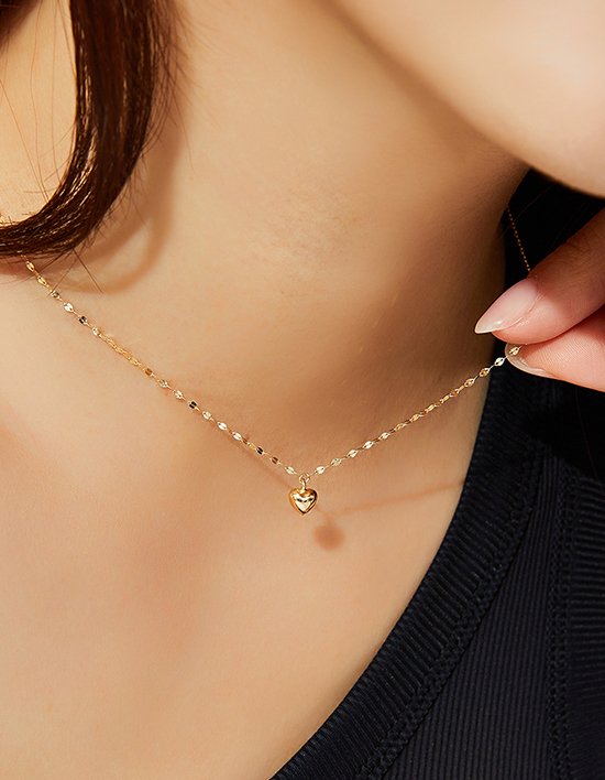 [엘렌쥬얼리]14K 심플 아몬드 통통 하트 금 목걸이