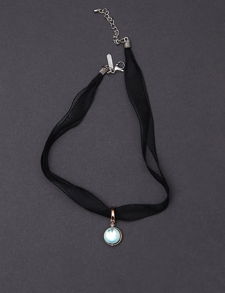 [하지나] Moonstone Mesh Silk Choker Necklace