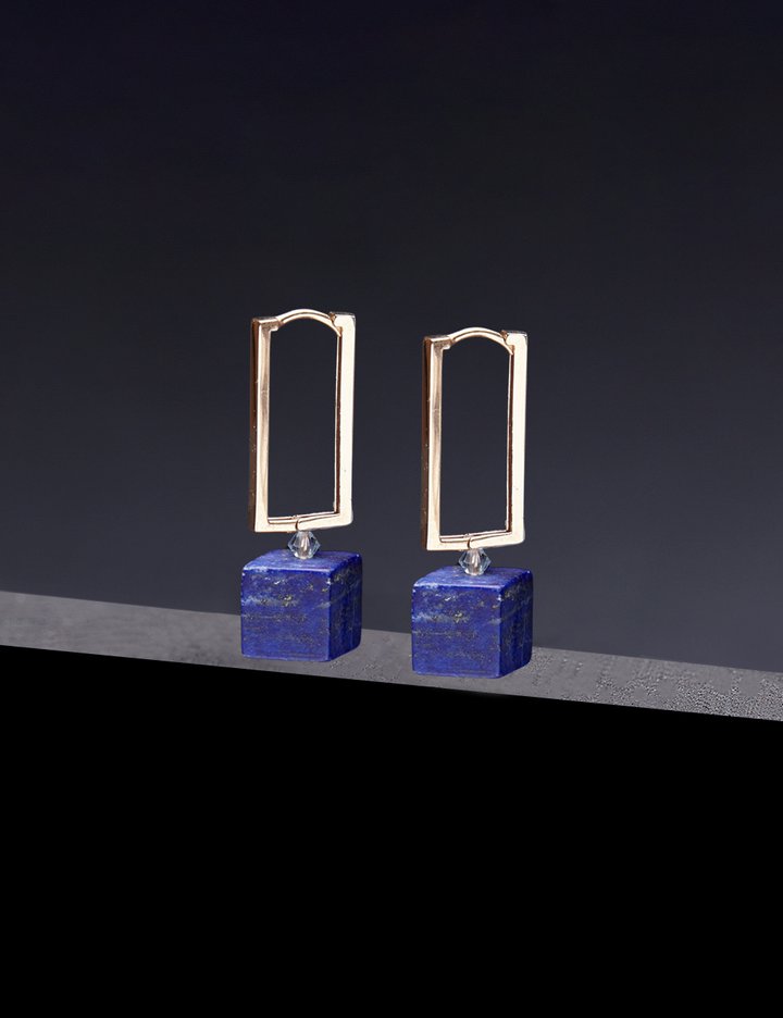 [하지나] Lapis Lazuli Square Hoop Earrings