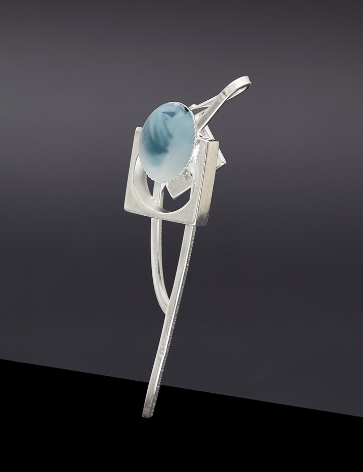 [하지나] Matte Navy Theoria Brooch - Silver (단품)