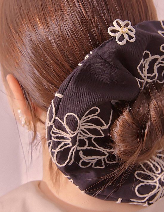 [다나버튼] 플라워 스티치 곱창밴드 스크런치