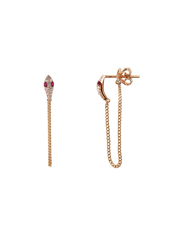 [레쿠] 14k 랩다이아몬드 루비 스네이크 체인 귀걸이_한짝 (핑크골드)