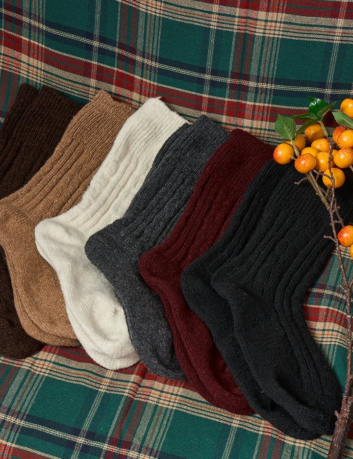 [울 ver.] 방한 겨울 도톰 꽈배기 따뜻 보온 양말 [6colors]