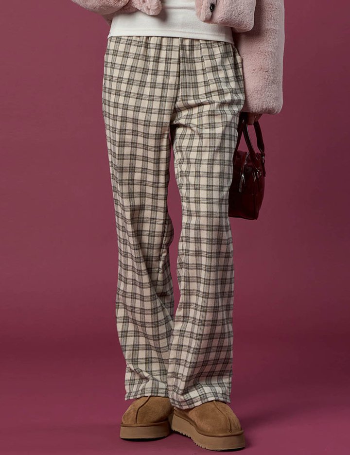 기모 도톰 체크 와이드슬랙스 밴딩 팬츠 [BEIGE] 가을 겨울 ver.