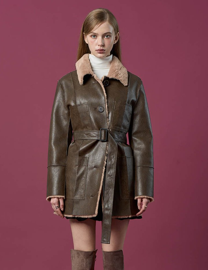 리버시블 밍크 방한 롱무스탕 자켓 [Brown] 벨트탈부착 LD ver.