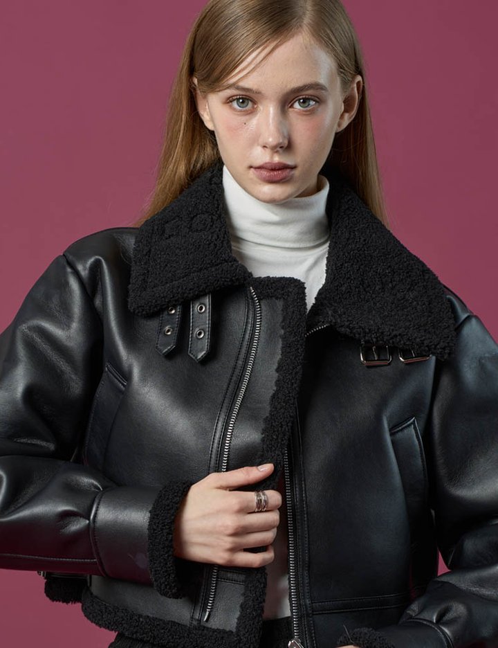 크롭 블러드 셔링 플리스 무스탕 자켓 [All_Black]