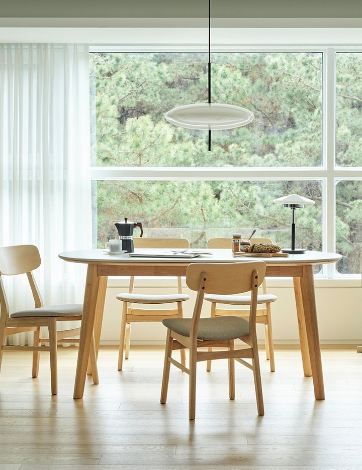 [한샘] 도노 내추럴 세라믹 와이드4인 타원식탁세트 (플레인의자4 포함) (단일상품)