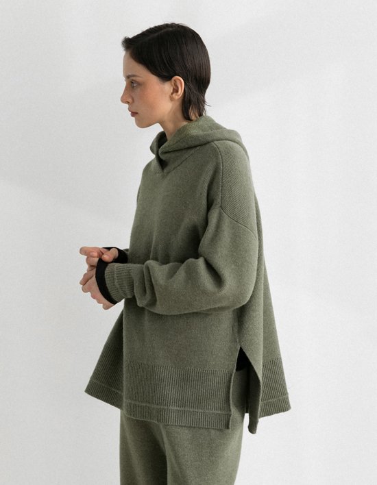 [모어서울] 리사 후드 롱 니트 탑