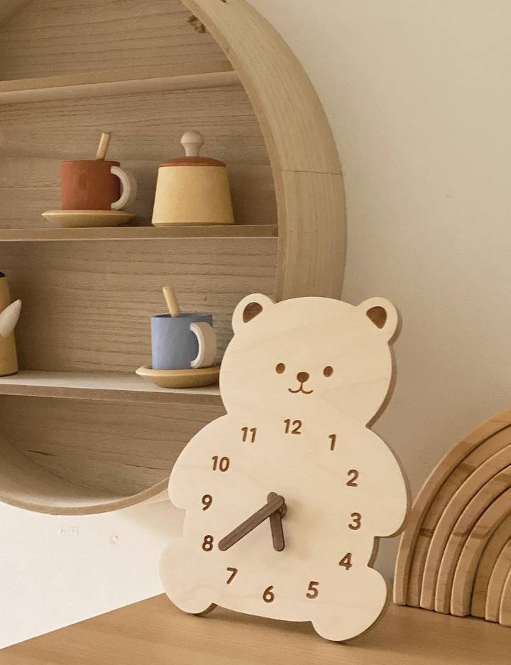 [뚜뚜] 곰돌이 원목 시계 출산 선물 우드 아이방 아기방 무소음 시계