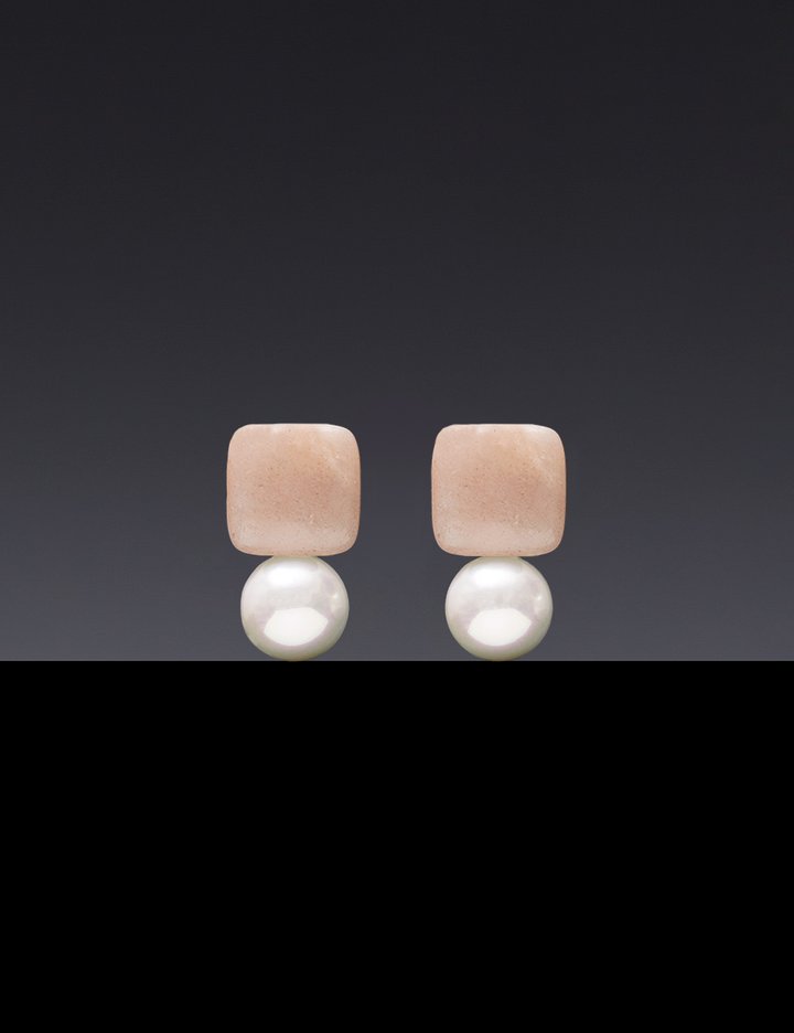 [하지나] 피치문스톤 White Pearl Earrings 8mm - 옵션 귀찌