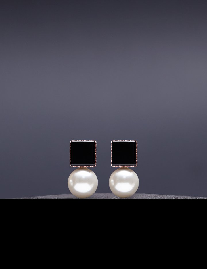 [하지나] Dual Onyx 10mm White Pearl Earrings - 옵션 귀찌