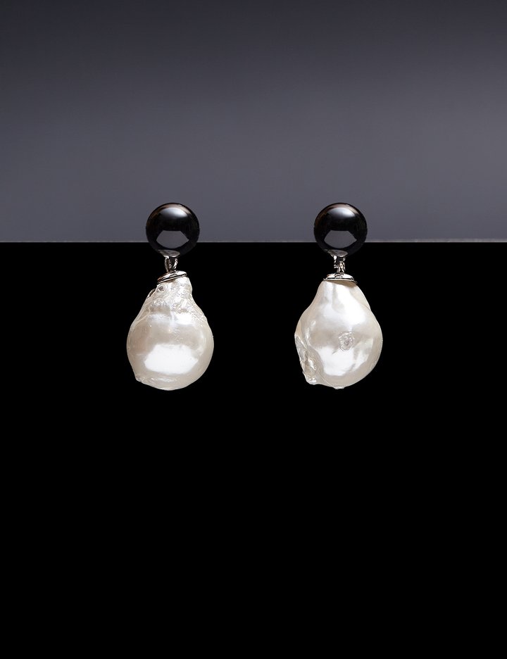[하지나] Baroque Pearl Melanger Earrings -Onyx
