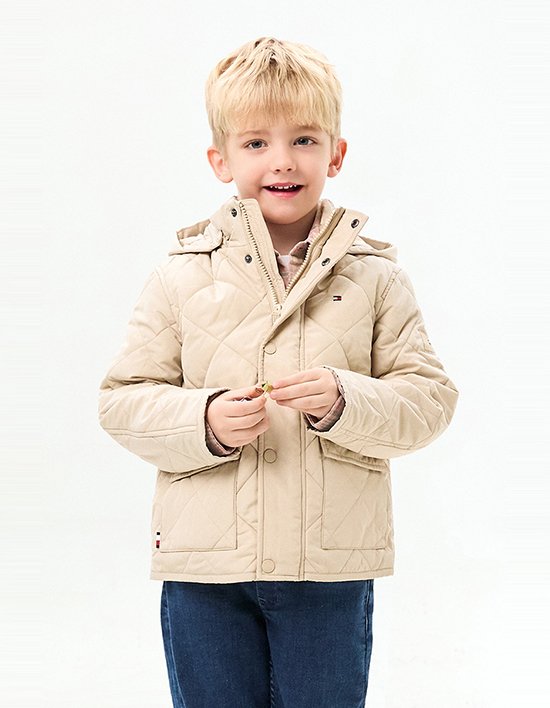 퀼팅 디자인으로 포근함과 스타일을 모두 갖춘 후드 재킷으로, 패딩 충전재가 들어 있어 따뜻하게 착용할 수 있습니다.<br>지퍼와 스냅 버튼 잠