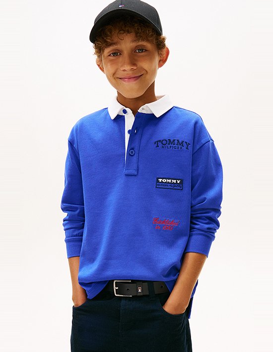 코튼 소재로 제작된 롱 슬리브 폴로 티셔츠로 하루종일 편안하게 착용할 수 있습니다.<br>앞면 멀티 로고 자수와 뒷면 빅 플래그 프린트 자수가