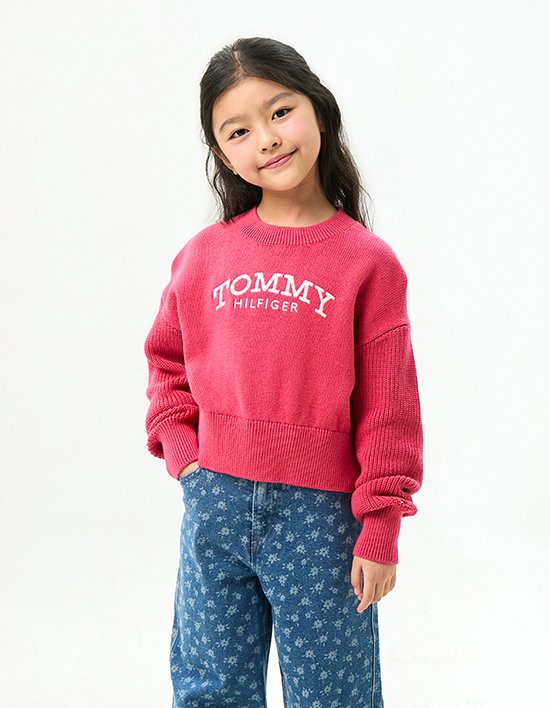 [타미힐피거 키즈] 로고 립 스웨트셔츠 VINTAGE CERISE
