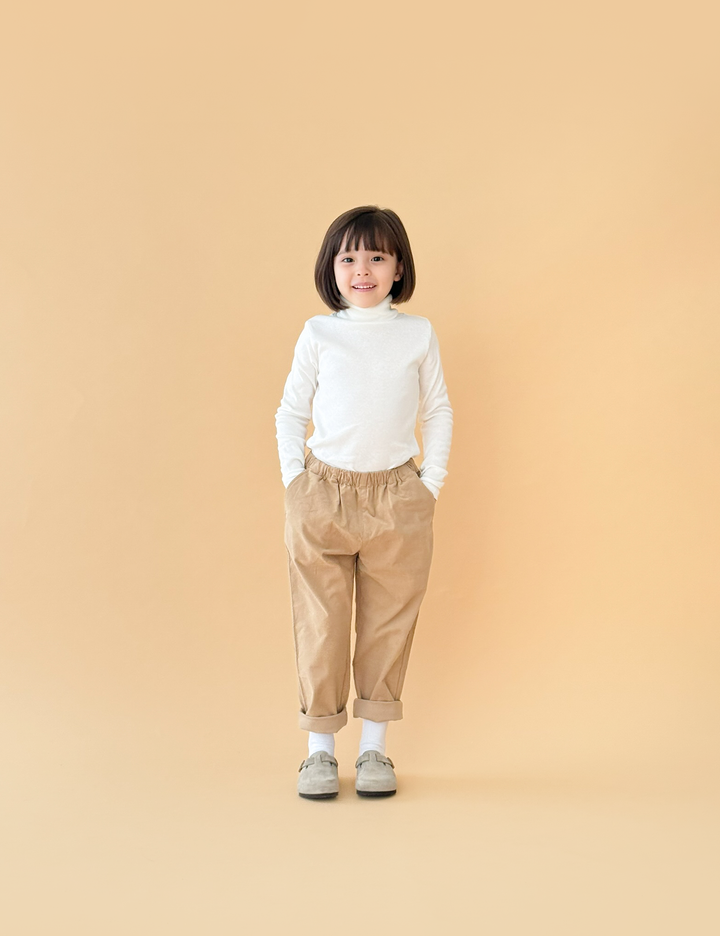 너무 두껍지 않은 코듀로이 소재이며 테이퍼드 실루엣으로 롤업하면 귀여운 핏을 연출할 수 있음