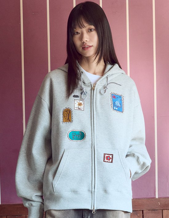 [엠블러] Frame story 자수 후드 집업 자켓 AZIP805 멜란지 (택1)