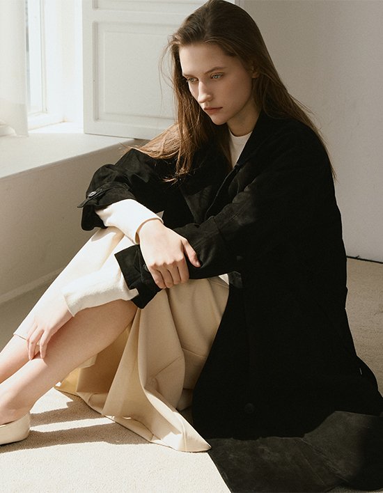 [로보] 이태리 스웨이드 더블 플랩 롱 트렌치 코트
