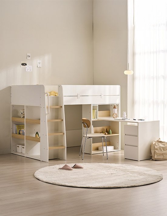 [스칸디아]키즈홈 어린이 이층 벙커 침대+3단책장+책상+서랍장 세트