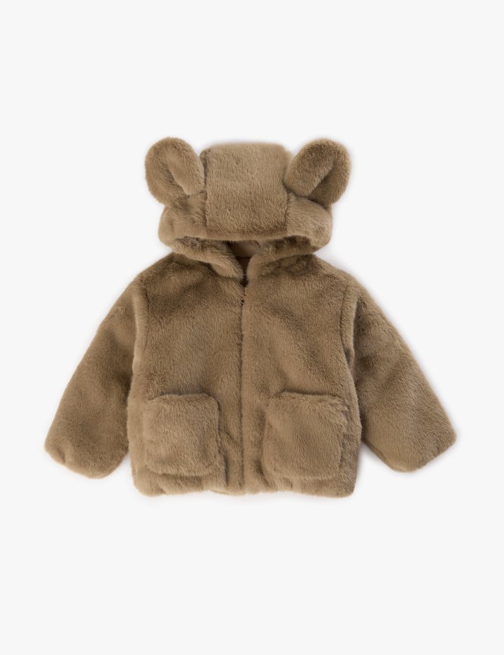 곰돌이 후드디테일이 더해진 부드러운 에코퍼소재로 제작된 겨울아우터입니다.