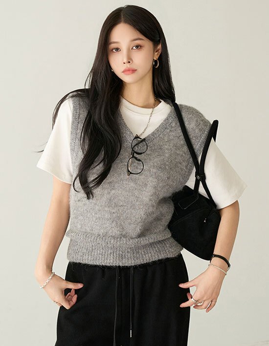 [메르시마리에] 알파카 브이넥 니트베스트 112613