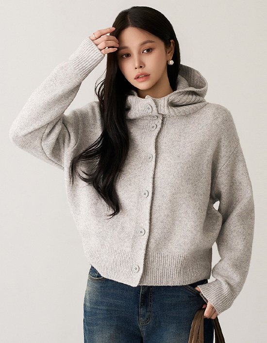 [메르시마리에] 하이넥 후드단추 울 가디건 22663