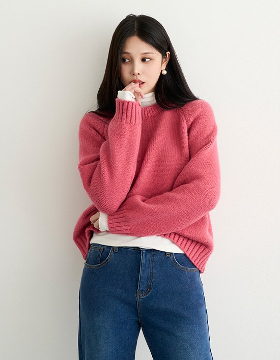 [메르시마리에] 래글런 레더 패치 소프트 니트 111902