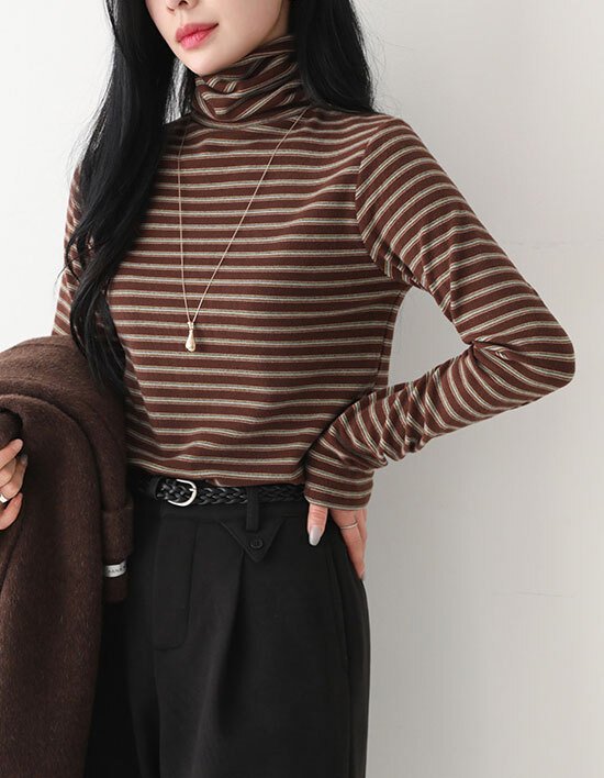 [메르시마리에] 스트라이프 기모 목폴라티셔츠 112645