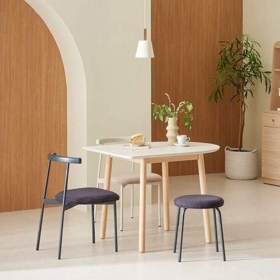 [한샘] 미나 내추럴 반타원 2인 1000 식탁세트 (라운드의자2개 포함)
