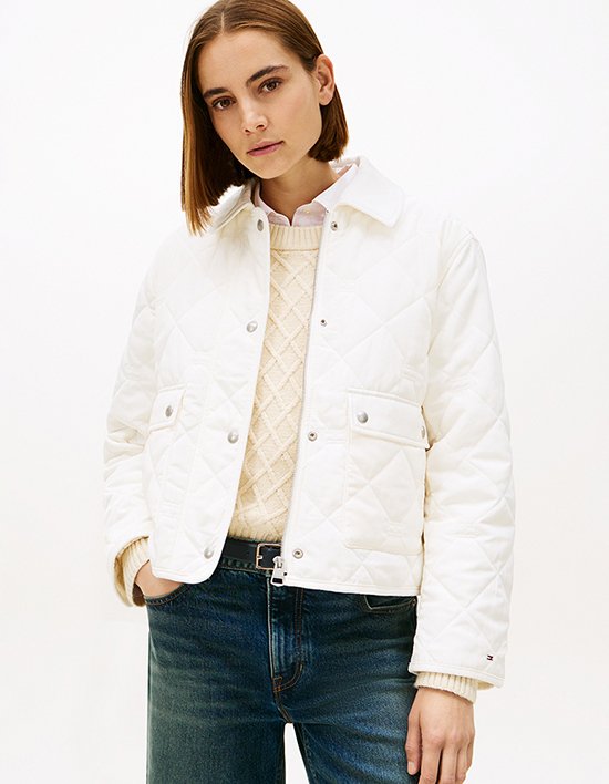 [타미힐피거 우먼] 플래그 패턴 퀼팅 재킷 IVORY