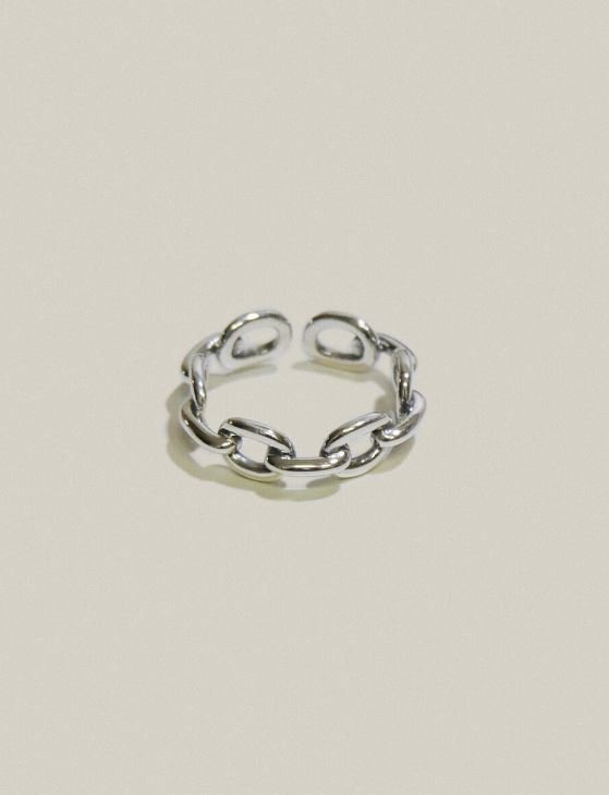 동그란 체인이 연결될 형태의 open ring 입니다. 프리사이즈로 손가락에 맞게 조절하여 착용 가능합니다. 유화처리되어 빈티지한 느낌입니다.