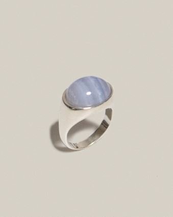 "파도를 연상시키는 아름다운 물결패턴의 블루레이스칼세도니 원석이 세팅되어있습니다. 칼세도니는 성취감 있는 삶을 살도록 지지해 주며 행운과 번영을 불러온다는 의미를 가집니다. 청량하고 시원한 파스텔톤의 원석 자체가 유니크한 포인트가 됩니다. "