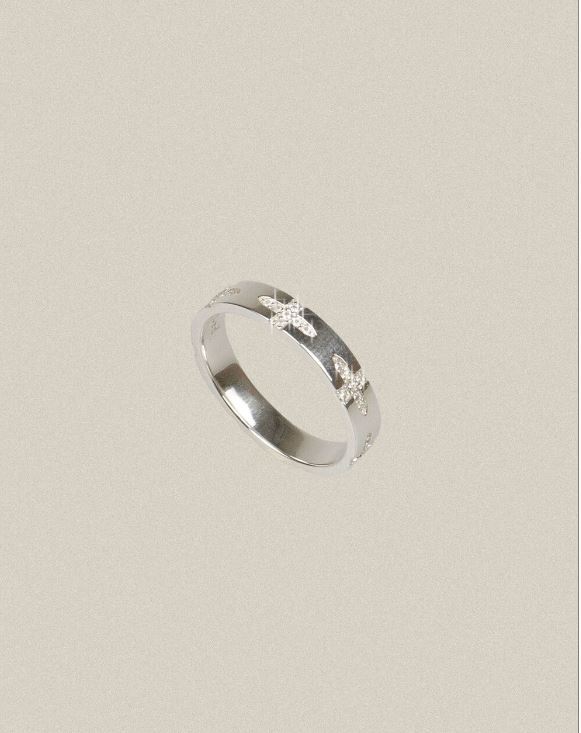 파르테즈의 스테디 셀러인 Cross Carving Ring의 두께감과 크기를 변형하여 홀리데이 무드를 더해 고급스럽게 재탄생되었습니다. 전체 둘러져 있는 십자가에 화이트 스톤이 정교하게 파베세팅 되어있습니다.
