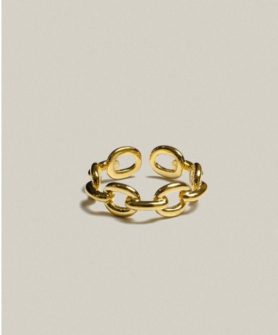 동그란 체인이 연결될 형태의 open ring 입니다. 프리사이즈로 손가락에 맞게 조절하여 착용 가능합니다. 실버소재에 골드 도금처리 되어있습니다.