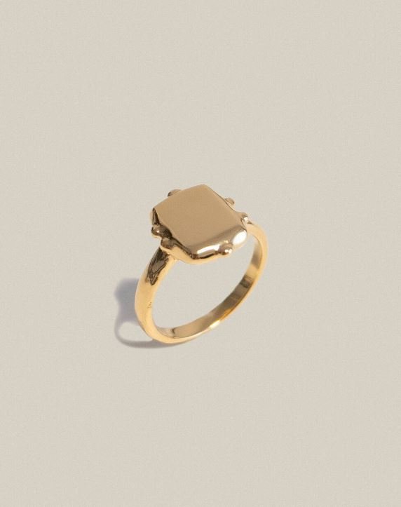 19세기 여성들이 가지고 다니던 손거울의 형태에서 영감받은 디자인의 반지로, 직사각형의 불규칙한 쉐입으로 되어있으며 설명적이지 않은 녹인듯한 거울의 프레임을 담고있습니다
