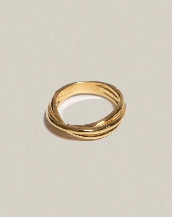 불규칙하게 엉켜있는 형태의 링입니다. 두개 이상의 링을 겹쳐서 착용하면 더욱 볼드한 느낌으로 연출 하실 수 있습니다.