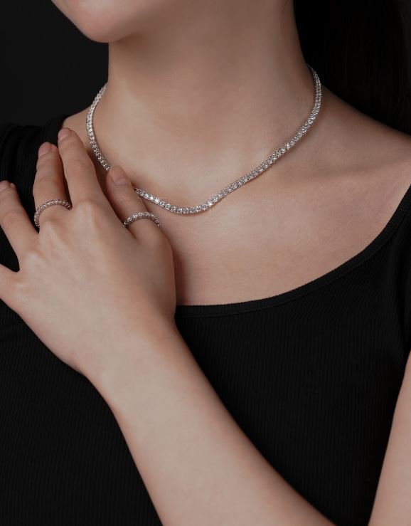 3mm의 라운드컷 지르코니아가 촘촘히 세팅되어 빛나는 테니스네크리스입니다. 가장 클래식하고 존재감있는 두께감으로, 오랫동안 즐기실 수 있는 타임리스한 주얼리 입니다.
