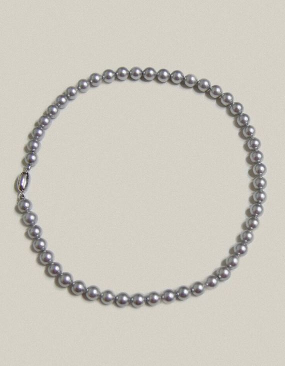 더욱 글램한 무드의 그레이펄 네크리스입니다. 8mm 크기의 그레이핵진주와 Silver Clasp디테일이 더욱 고급스러우며 비교적 짧은 디자인으로 셔츠나 맨투맨 등에 깔끔하게 연출 하실 수 있습니다.