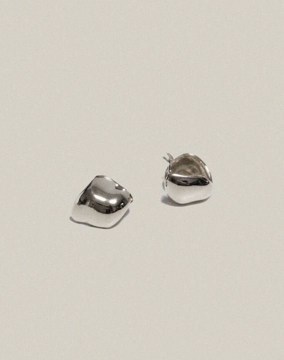 내추럴한 형태의 볼륨감 있는 형태의 실버 이어링 입니다. 안쪽이 파여있어 가볍게 착용하기 좋습니다. 비정형의 곡선적인 형태가 매력인 이어링입니다.