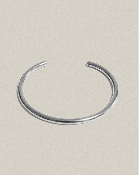 속이 차있는 silver925소재의 뱅글입니다. 끝부분이 둥그런 형태로 착용감이 편하고, 중량감이 있는 제품이라 고급스럽습니다. 룩에 관계없이 두루 잘 어울리는 디자인으로 데일리하게 착용하기 좋습니다.