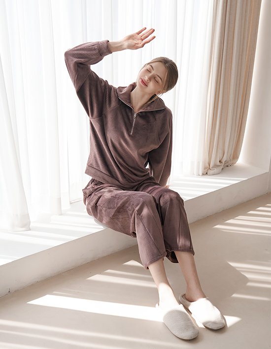 부드럽고 편안한 코듀로이 반집업 셋업