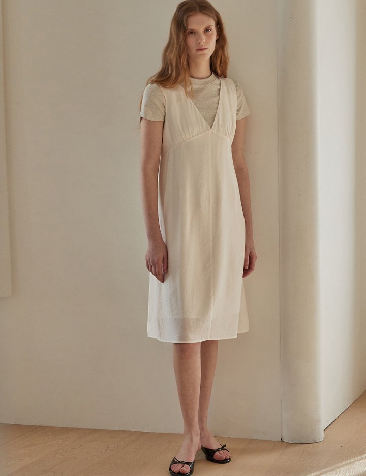 [비뮤즈맨션] 브이넥 레이어드 드레스 크림아이보리