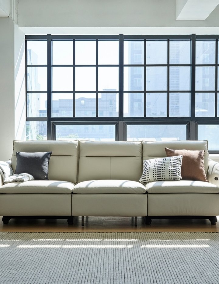 [한샘] MVME 어폰 천연가죽 리클라이너 소파 4인