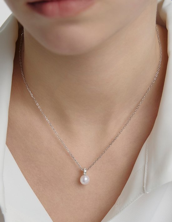 [이에르로르] 에센스 실버(W) 모이사나이트 담수진주 목걸이 8mm (단품)