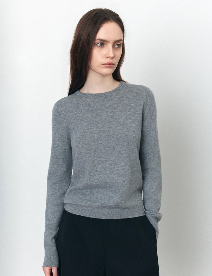 [시야쥬] 베이직 라운드 넥 긴팔 니트_멜란지 그레이 (SIKN2175)